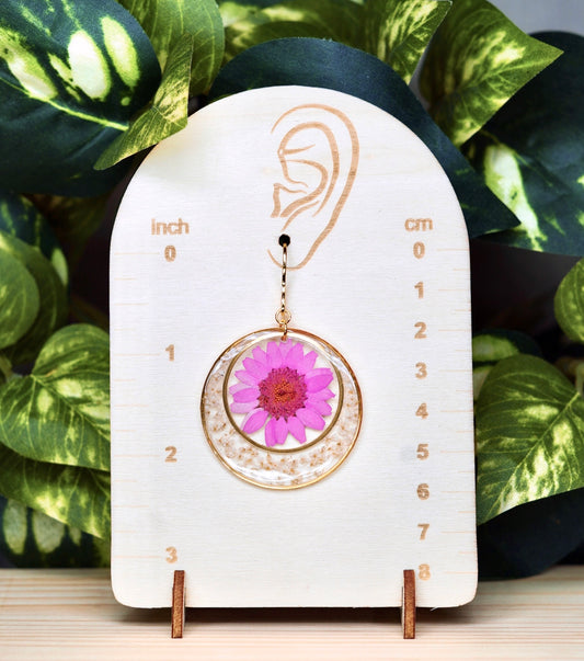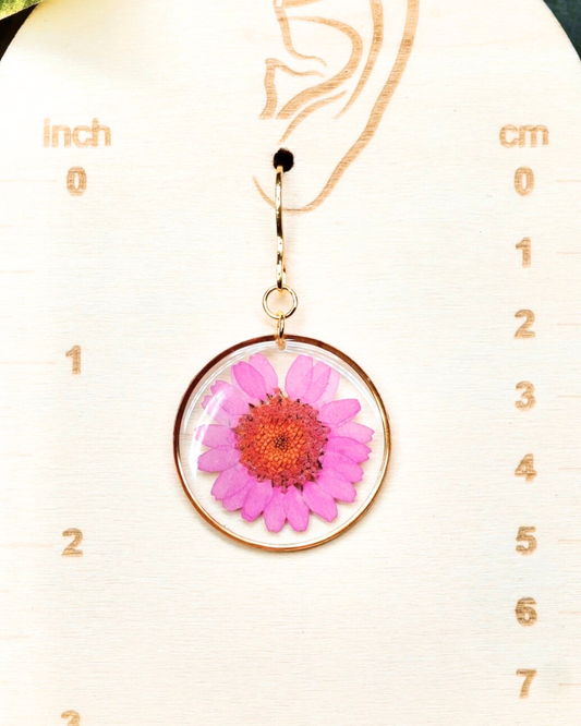 Hot Pink Daisy Flower Circle Dangle Earrings