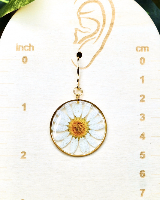 Pastel Purple Daisy Flower Dangle Circle Earrings