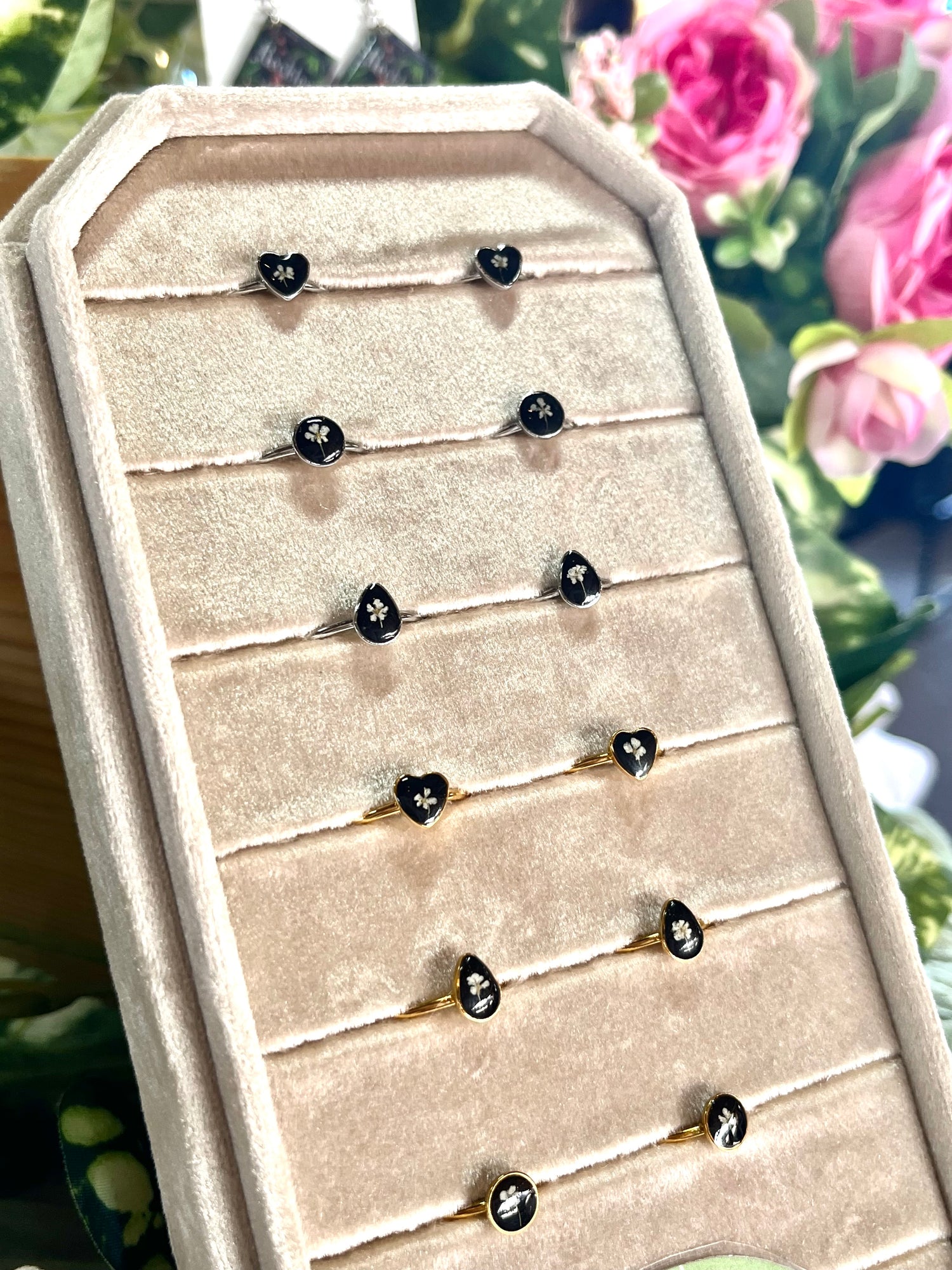White Queen Anna Lace Pressed Flower Dainty Ring - 3 Designs