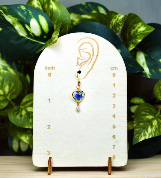 Blue Flower Mini "Sweet Heart" Gold Pearl Dangle Earring