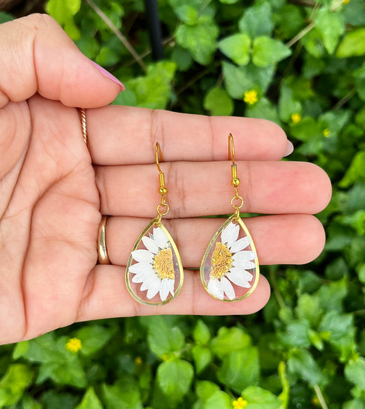 Sunny Daisy Flower Gold Teardrop Dangle Earring