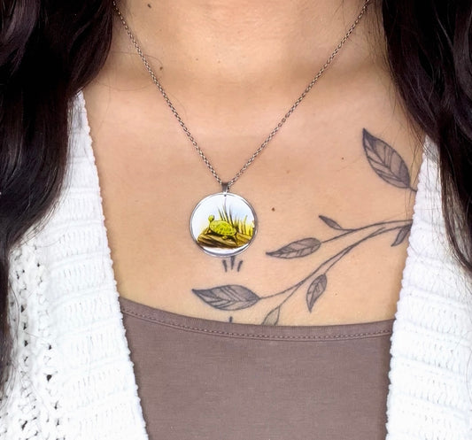Bird Book Floral Illustration Circle Flower Circle Necklace