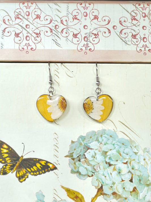 Yellow Zennia Wildflower Heart Earrings