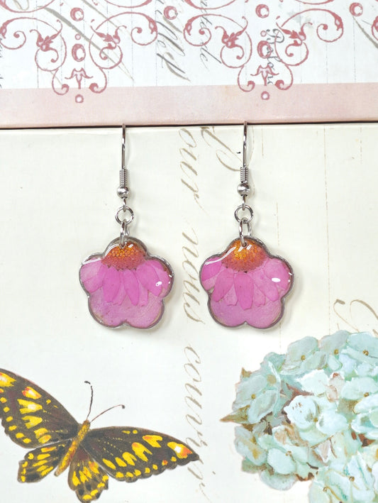 Pink Zennia Wildflower Flower Earrings