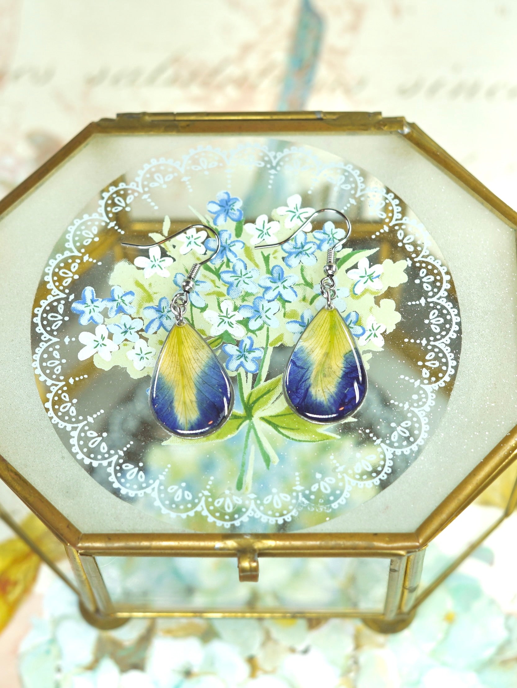 Care instructions: I use pressed or dried flowers to keep the beautiful colors of the flowers. However, the color may change or fade over time due to natural processes. Storing it away from direct sunlight when not in use will keep its color even longer. Please avoid direct contact with chemicals such as sunscreen and perfumes for the gold materials.