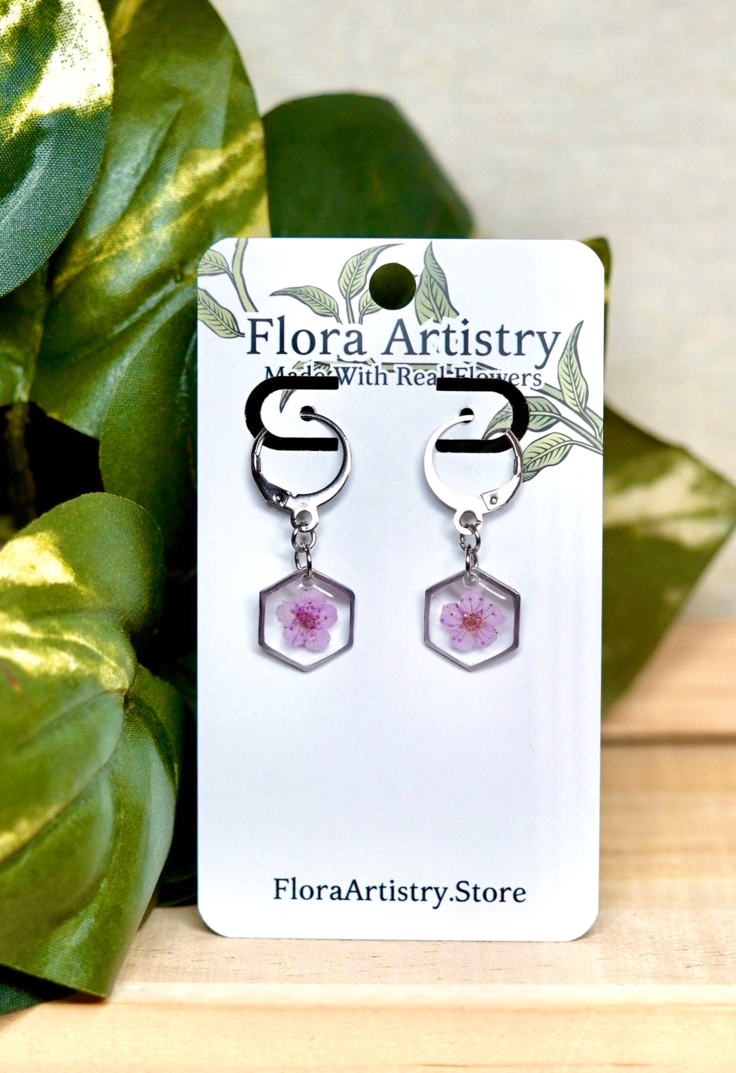 Pastel Purple Pressed Flower Huggie Hoops Earring